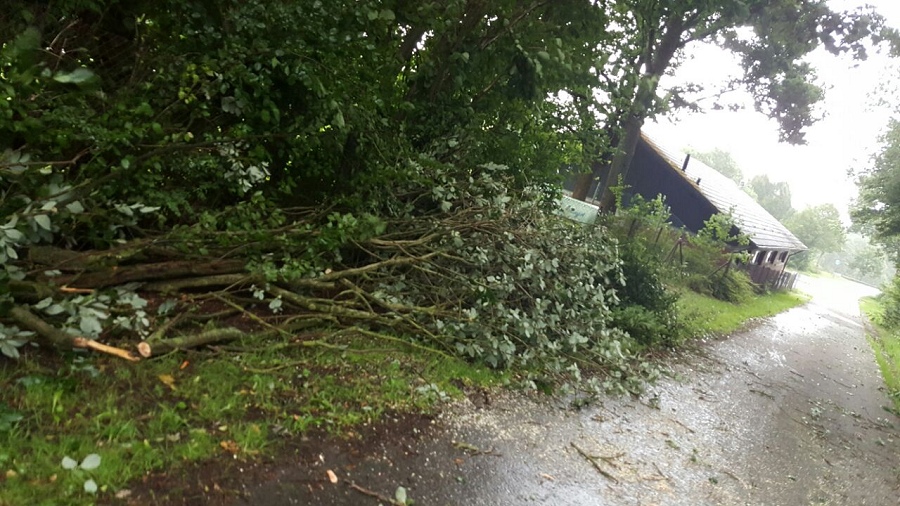 Baum auf Straße - Baumkrone im Baum verhakt |