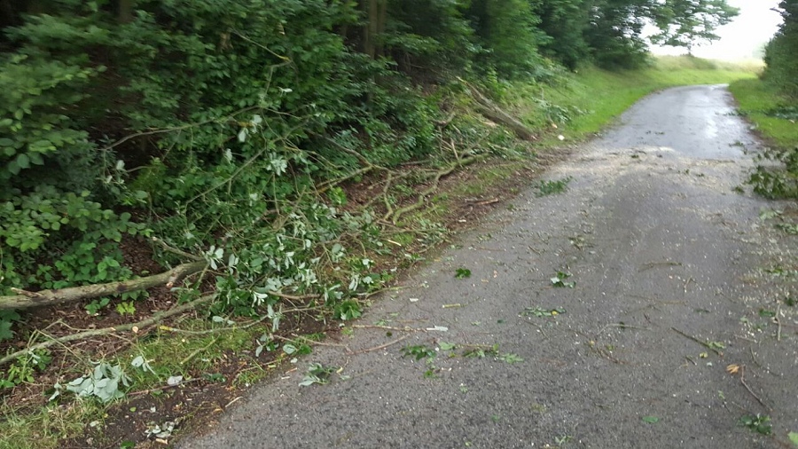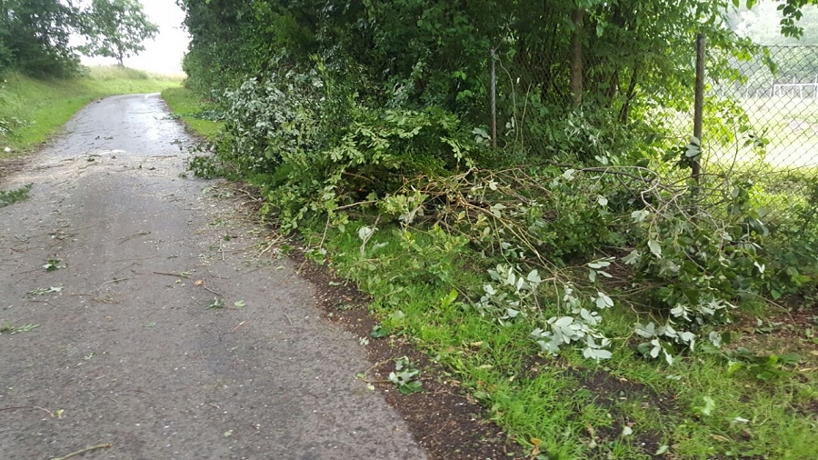 Abgebrochener Baum liegt auf einer Nebenstraße