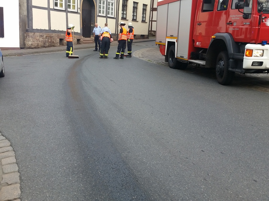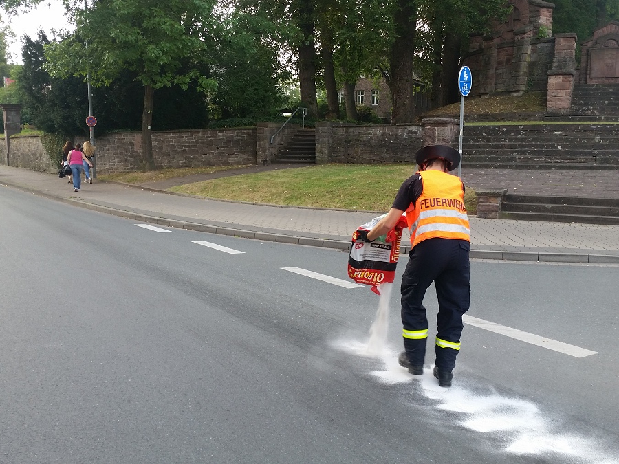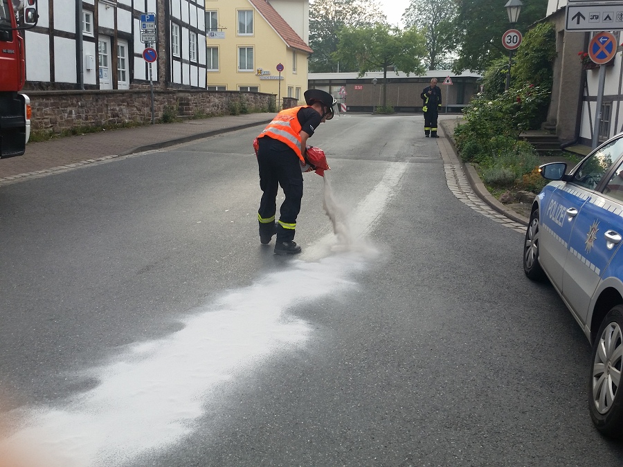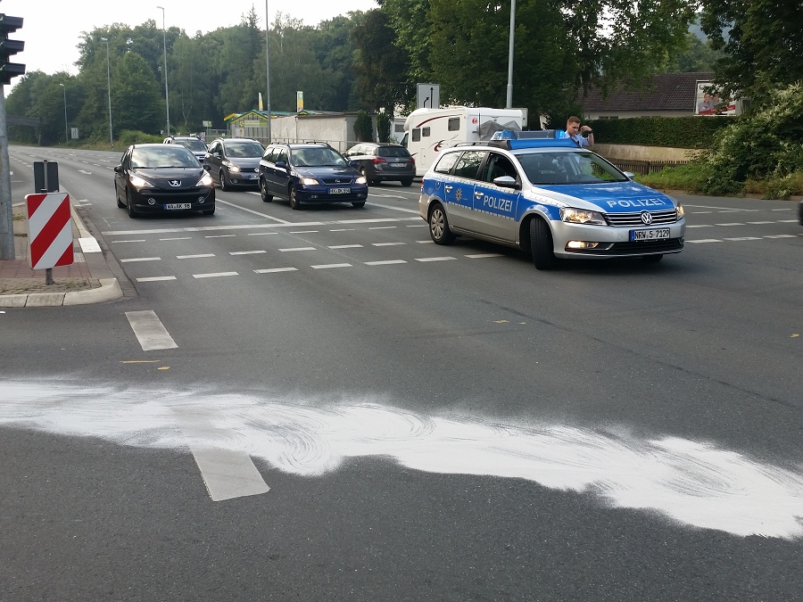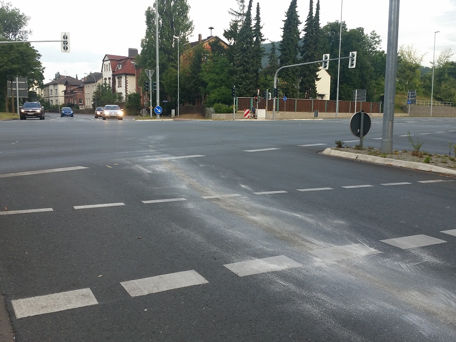 Drei jeweils 20m lange Dieselspuren in den Kurvenbereichen der Wegetalstraße, Kreuzung Lütmarser Tor und Abfahrt Zur Lüre