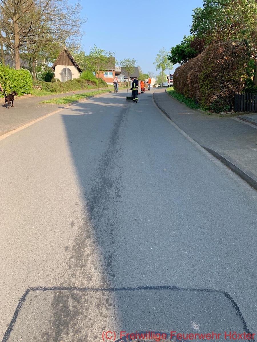 Eine ca. 200 Meter lange Ölspur auf einer Dorfstraße