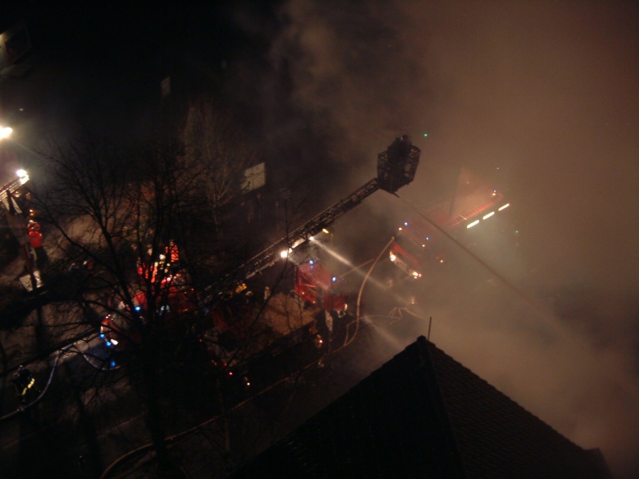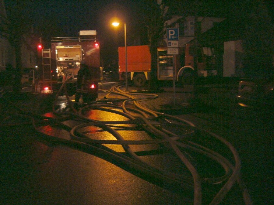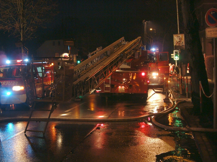 Erneute überörtliche Löschhilfe in Brakel: Ein Tischlereibetrieb in der Innenstadt von Brakel fiel in den frühen Morgenstunden des 19. Dezembers 2004 einem Großbrand zum Opfer. Das Brandobjekt befand sich sehr unzugänglich nur wenige Meter von einigen Wohnhäusern entfernt. Die Höxteraner Drehleiter wurde zur überörtlichen Löschhilfe von der Feuerwehr Brakel zur Unterstützung gerufen. An der Einsatzstelle nahmen die Einsatzkräfte aus Höxter zum Schutz der an das Brandobjekt angrenzenden Gebäude und zur Brandbekämpfung ein Wenderohr über die Drehleiter vor.